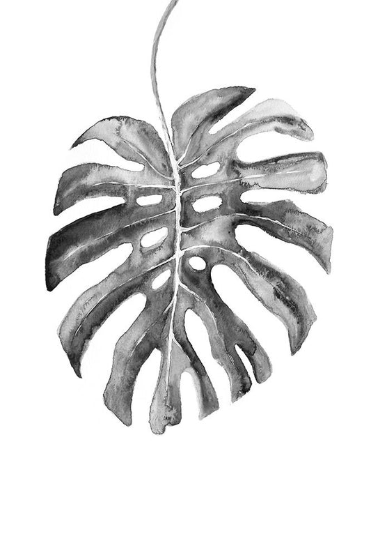 BW monstera leaf White Modern Wood Framed Art Print with Double Matting by Laiz Blursbyai, Rosana
