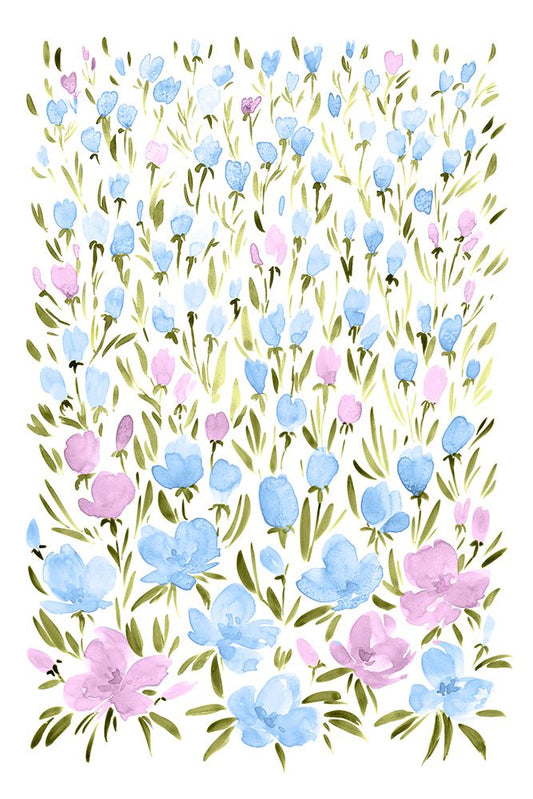 Field of purple and blue flowers White Modern Wood Framed Art Print with Double Matting by Laiz Blursbyai, Rosana