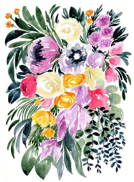 Urja loose floral watercolor bouquet White Modern Wood Framed Art Print with Double Matting by Laiz Blursbyai, Rosana