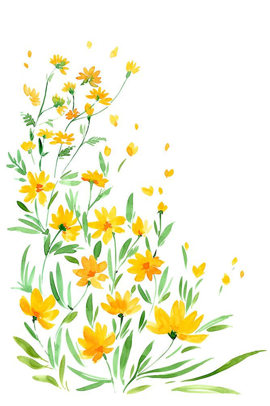 Yellow watercolor wildflowers White Modern Wood Framed Art Print with Double Matting by Laiz Blursbyai, Rosana