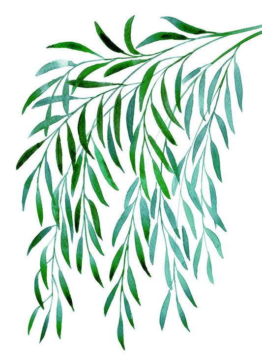 Cascading watercolor eucalyptus White Modern Wood Framed Art Print with Double Matting by Laiz Blursbyai, Rosana