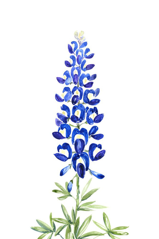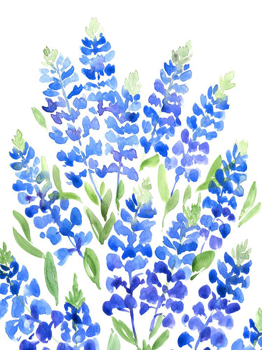 Watercolor Texas bluebonnet White Modern Wood Framed Art Print with Double Matting by Laiz Blursbyai, Rosana