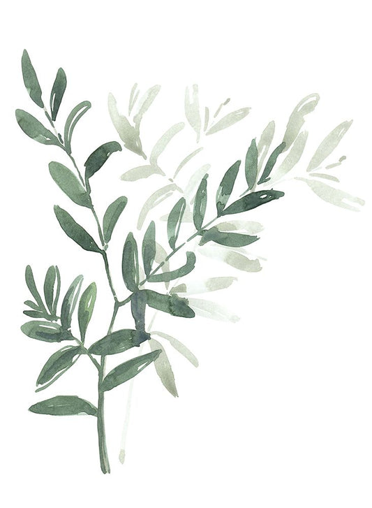 Watercolor laurel branch White Modern Wood Framed Art Print with Double Matting by Laiz Blursbyai, Rosana