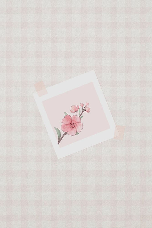 Pink Cherry Blossom White Modern Wood Framed Art Print with Double Matting by Thai, Xuan