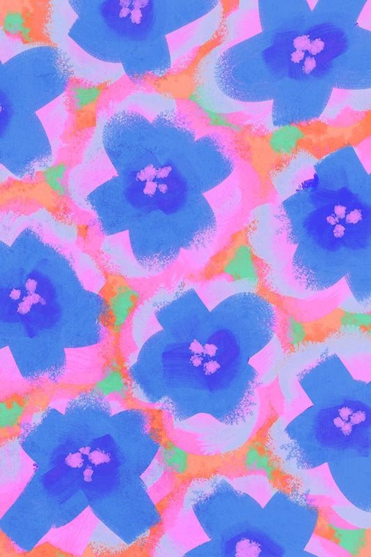 Purple Flowers Pattern White Modern Wood Framed Art Print with Double Matting by Treechild