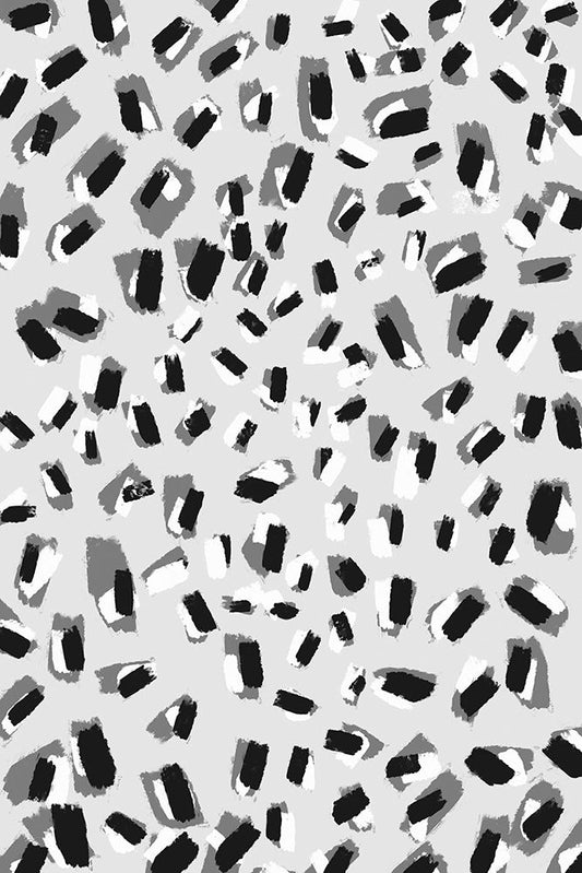 Black And White Little Strokes White Modern Wood Framed Art Print with Double Matting by Treechild