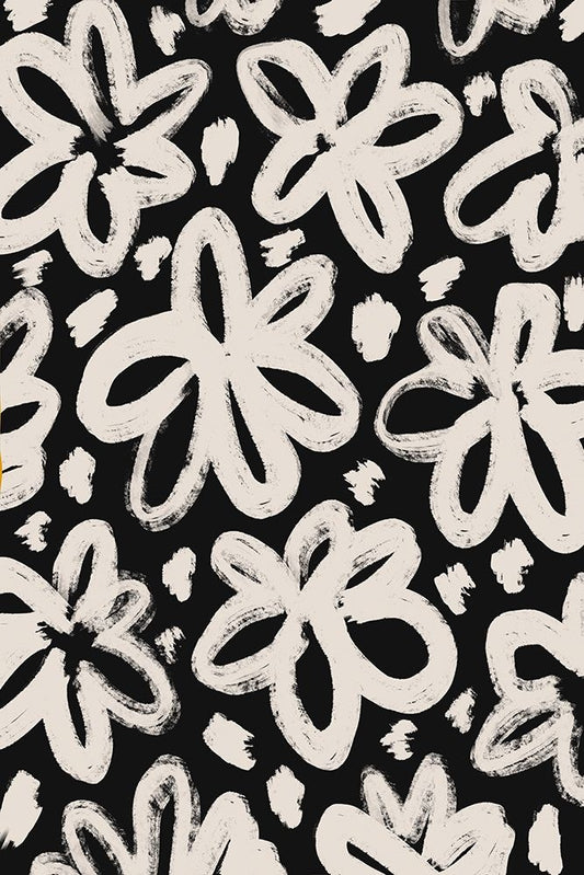 Giant Beige Flower Pattern White Modern Wood Framed Art Print with Double Matting by Treechild