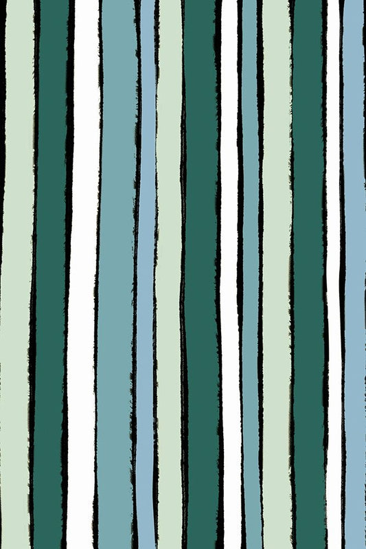 Smaragd Green Stripes White Modern Wood Framed Art Print with Double Matting by Treechild