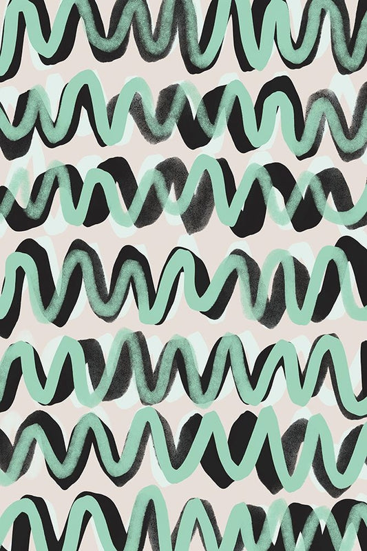 Beige Grey Black Waves Pattern White Modern Wood Framed Art Print with Double Matting by Treechild