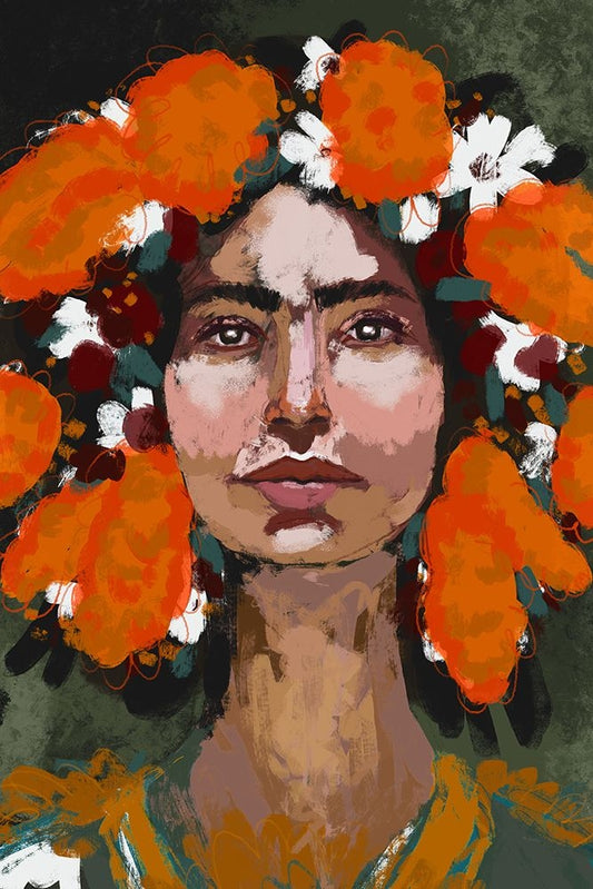 Frida (Special Edition) White Modern Wood Framed Art Print with Double Matting by Treechild