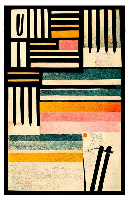 Pastel Stripes White Modern Wood Framed Art Print with Double Matting by Treechild