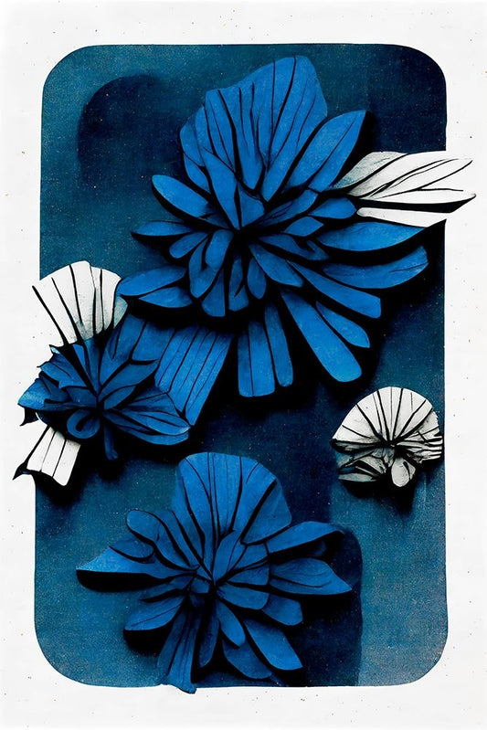 Blue Dry Flowers White Modern Wood Framed Art Print with Double Matting by Treechild