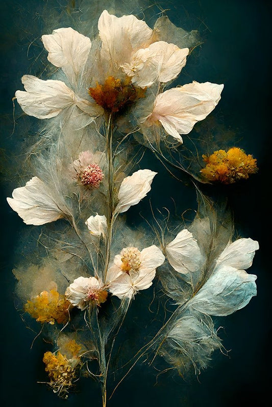 Crystal Flowers White Modern Wood Framed Art Print with Double Matting by Treechild