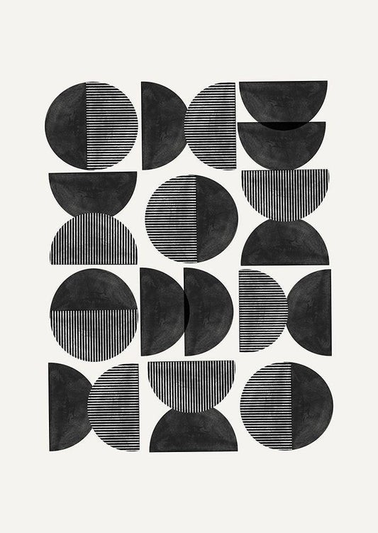 Mid Century-Geometric White Modern Wood Framed Art Print with Double Matting by The Miuus Studio