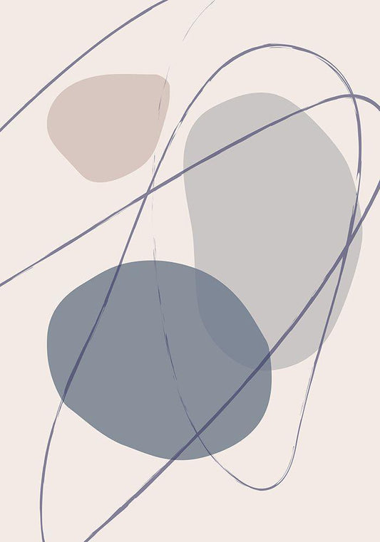 Blue Shapes White Modern Wood Framed Art Print with Double Matting by 1x Studio