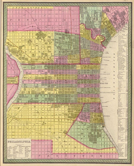 City of Philadelphia 1849 White Modern Wood Framed Art Print with Double Matting by Vintage Maps