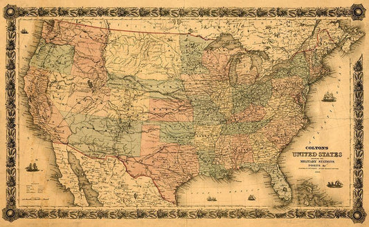 Military Forts Posts and Bases in the United States 1861 White Modern Wood Framed Art Print with Double Matting by Vintage Maps