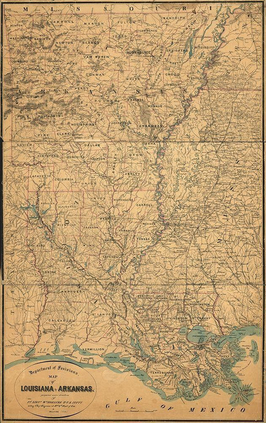 Louisiana and Arkansas White Modern Wood Framed Art Print with Double Matting by Vintage Maps