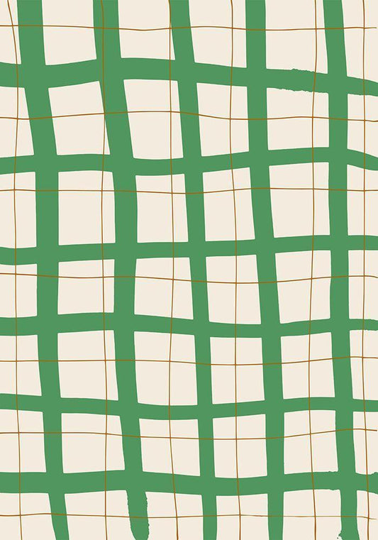 Green Grid White Modern Wood Framed Art Print with Double Matting by 1x Studio