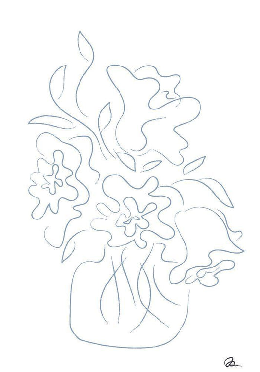 Flower Bouquet Sketch White Modern Wood Framed Art Print with Double Matting by 1x Studio II