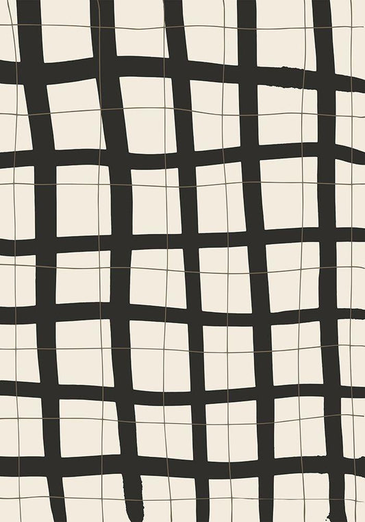 Black Grid White Modern Wood Framed Art Print with Double Matting by 1x Studio