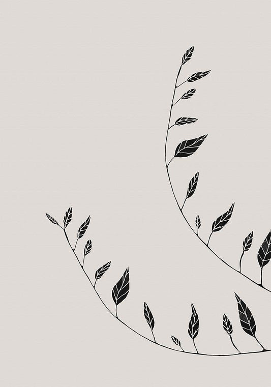 Wavy Branch Black White Modern Wood Framed Art Print with Double Matting by 1x Studio II