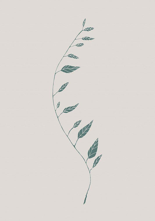 Wavy Branch Green White Modern Wood Framed Art Print with Double Matting by 1x Studio II