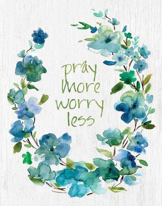 Pray Flower Wreath White Modern Wood Framed Art Print with Double Matting by Robinson, Carol