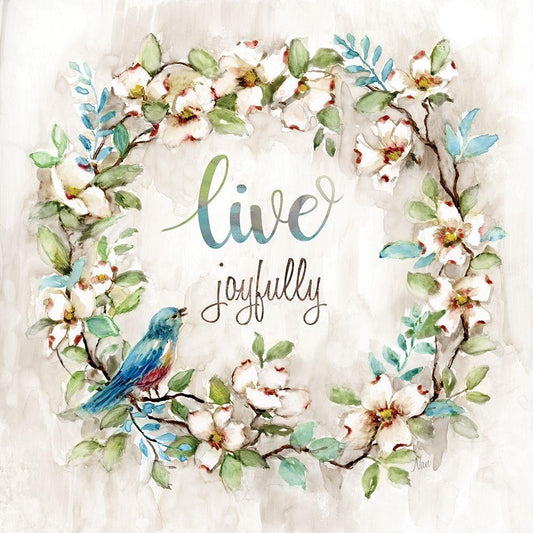Live Joyfully White Modern Wood Framed Art Print with Double Matting by Nan