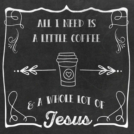 Coffee and Jesus White Modern Wood Framed Art Print with Double Matting by Murray, Amanda