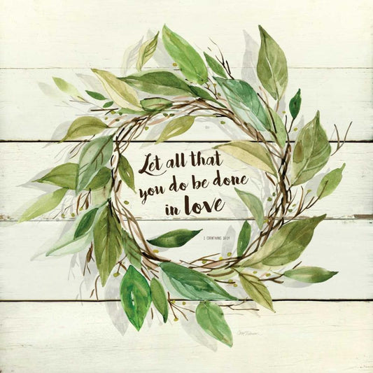 Corinthians Wreath White Modern Wood Framed Art Print with Double Matting by Robinson, Carol