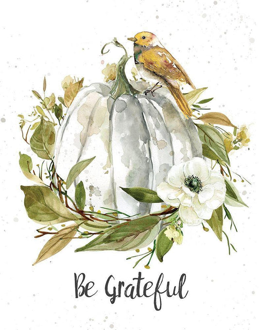 Be Grateful White Modern Wood Framed Art Print with Double Matting by Robinson, Carol