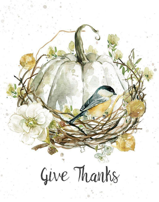 Give Thanks White Modern Wood Framed Art Print with Double Matting by Robinson, Carol