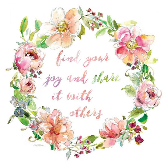 Joy Wreath White Modern Wood Framed Art Print with Double Matting by Robinson, Carol