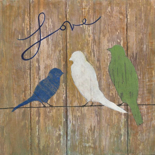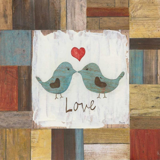 Love Birds White Modern Wood Framed Art Print with Double Matting by Tava Studios