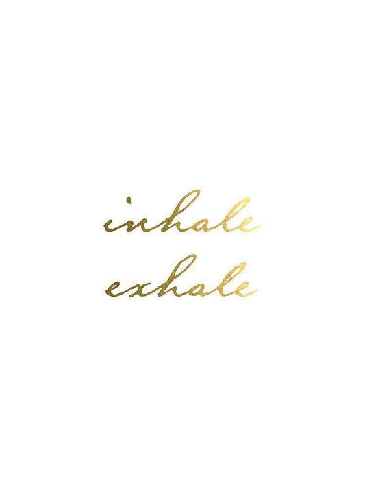 Inhale Exhale Gold White Modern Wood Framed Art Print with Double Matting by Urban Epiphany
