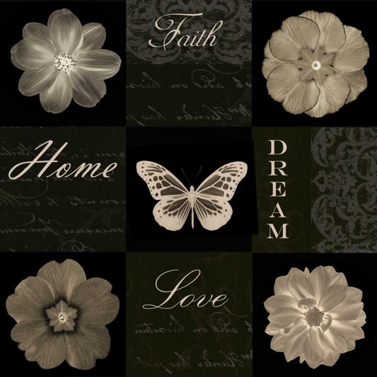 Sepia Floral 9 Patch I White Modern Wood Framed Art Print with Double Matting by Greene, Taylor