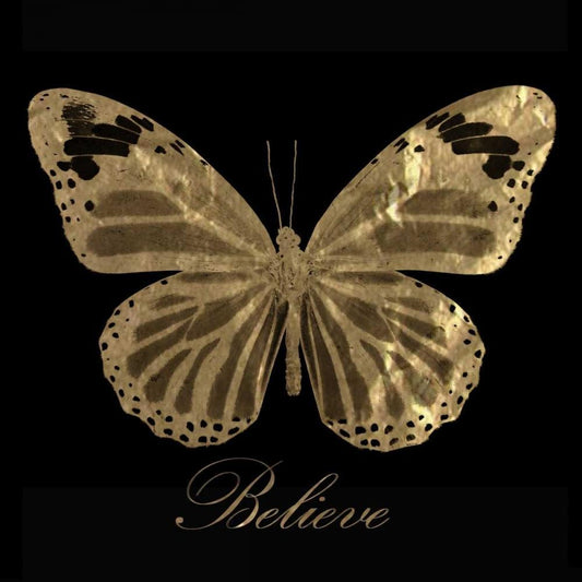 Believe Gold Butterfly White Modern Wood Framed Art Print with Double Matting by Greene, Taylor