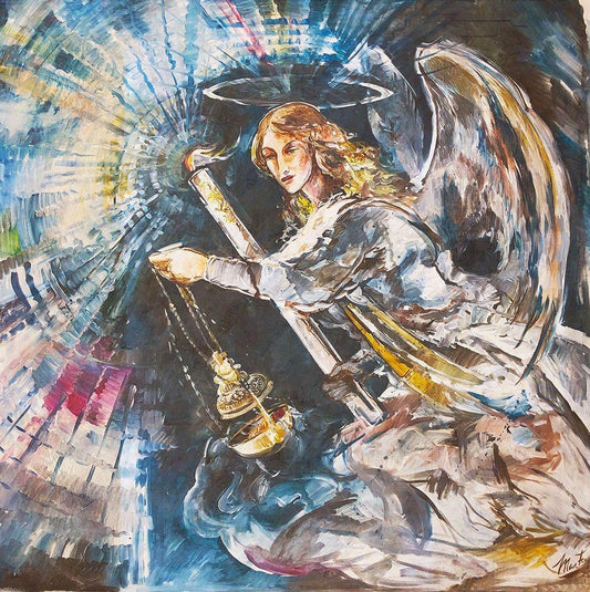 Angel With Candle- Light White Modern Wood Framed Art Print with Double Matting by Wiley, Marta