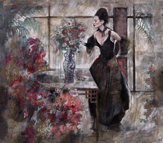 Floral and Figure White Modern Wood Framed Art Print with Double Matting by Wiley, Marta