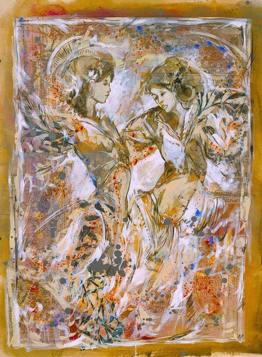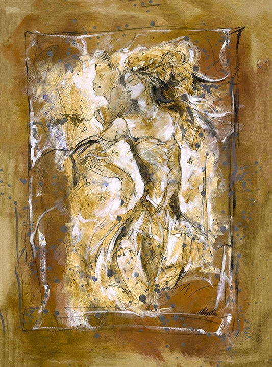 Lovers II- Golden White Modern Wood Framed Art Print with Double Matting by Wiley, Marta
