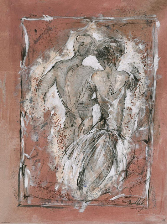 Lovers II- Beige white White Modern Wood Framed Art Print with Double Matting by Wiley, Marta