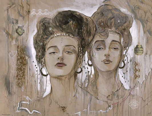 Sisters- Beige White Modern Wood Framed Art Print with Double Matting by Wiley, Marta