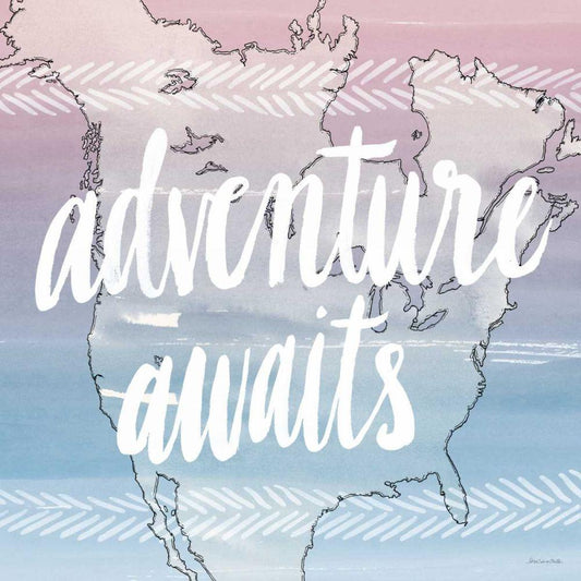 World Traveler Adventure Awaits White Modern Wood Framed Art Print with Double Matting by Miller, Sara Zieve