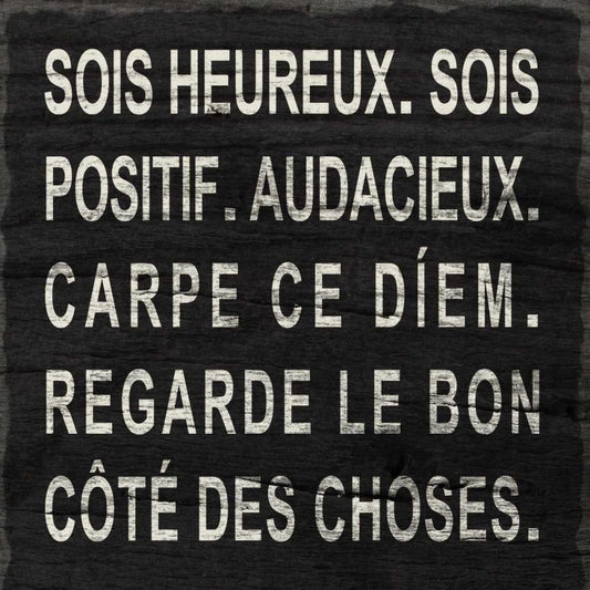 Think Happy (French) White Modern Wood Framed Art Print with Double Matting by SD Graphics Studio