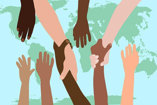 Reaching Out Around The World White Modern Wood Framed Art Print with Double Matting by Bucheli, Jen