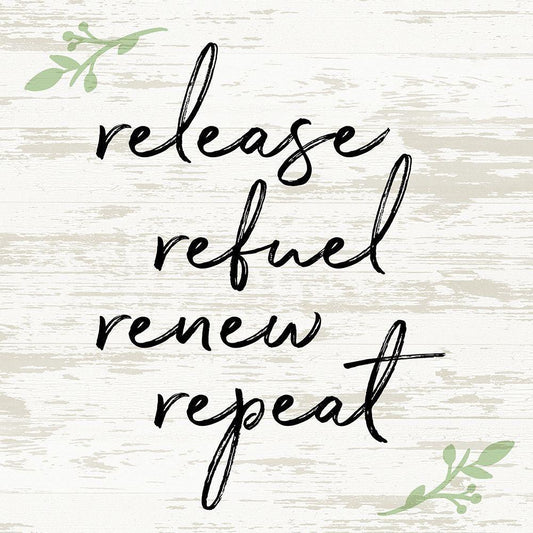 Release Refuel Renew Repeat White Modern Wood Framed Art Print with Double Matting by Quach, Anna