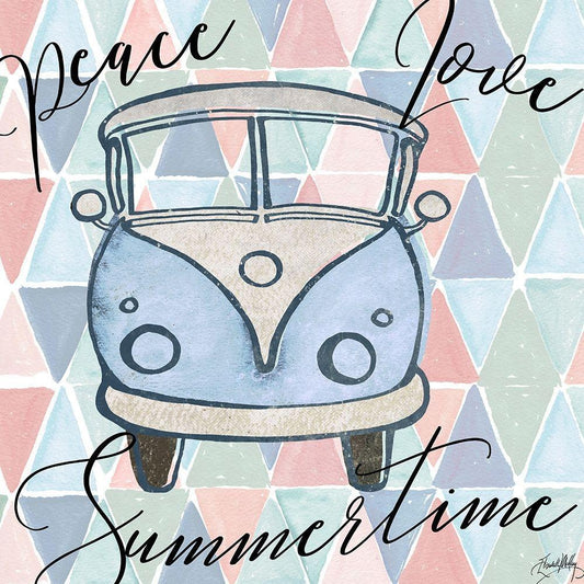 Peace Bus I White Modern Wood Framed Art Print with Double Matting by Medley, Elizabeth