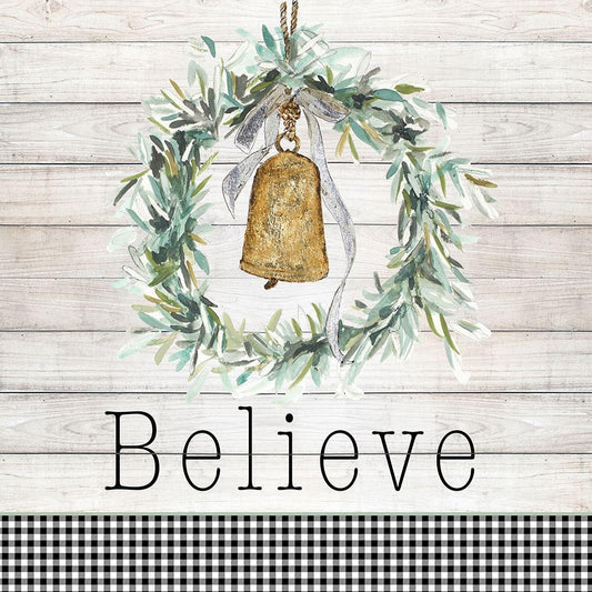 Believe Bell Wreath White Modern Wood Framed Art Print with Double Matting by Pinto, Patricia