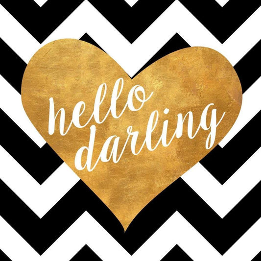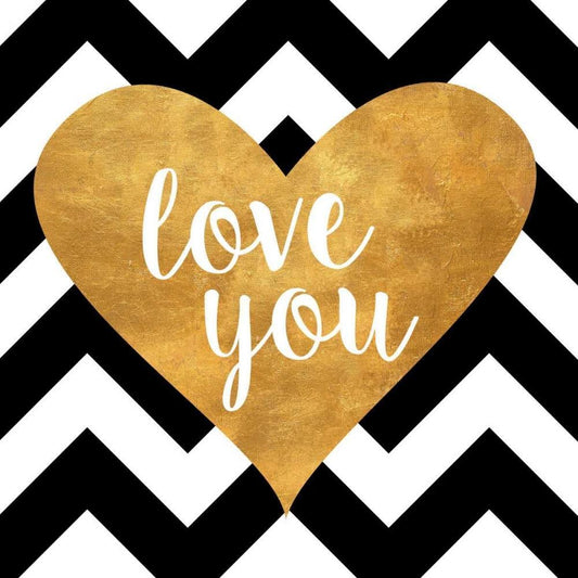 Gold Chevron Hearts Square I White Modern Wood Framed Art Print with Double Matting by SD Graphics Studio